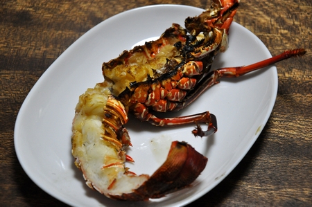 おいしそーに変身しました! 粟国島の妹によると 水から茹でて半分に切ってグリルで焼く。 卵とミソはマヨネーズであえてぬって焼くとおいしいって言ってたけど そのままの味を楽しみました。 芸能人みたいに身をはがして食べました。 卵は父にあげました。 電話で聞いたら、これ網で採ったんだってー。 採ってみたいね。