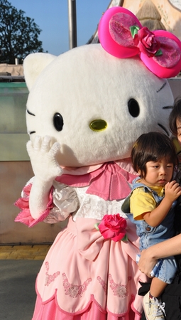 帰ろうとしたら、なんとキティちゃんに駆け寄ってたので列に並んで記念写真。