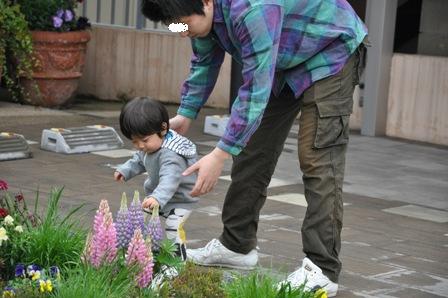 花が好きみたいでどこの花壇でも立ち止まるんだよー。