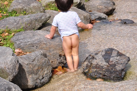 小川の近くで遊んでると水の音に引き寄せられてトコトコと近寄る・・・。