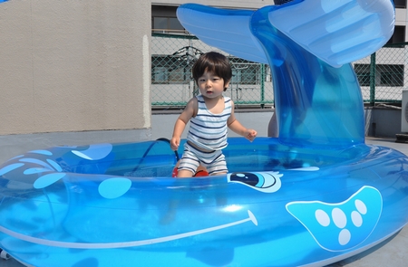 一昨日はジジババが買ってくれたプールに入って遊んだ。