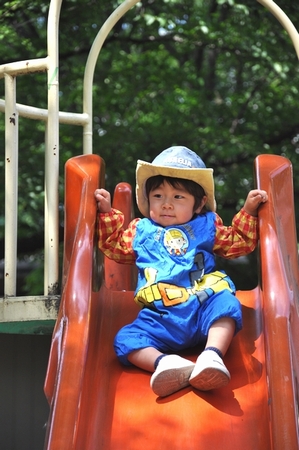 コタロウに滑り台 させようとしたけど 滑らないコタロウ。