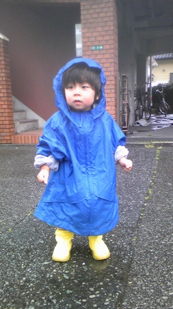 ちょっと携帯から更新。 けっこうな雨ふるねー。 雨降りだけどコタさん機嫌が悪いので カッパ着せて長靴はかせて外に出てみた。 しばらく水溜まりをいじいじしてました。 んで、側溝の穴に石落としたり、葉っぱ拾ったり。 たまにはいいねぇ。 雨降ると憂鬱になるけど、楽しまないかんね。 オークションで落としたカッパが まだでかすぎてETみたいでうけた。